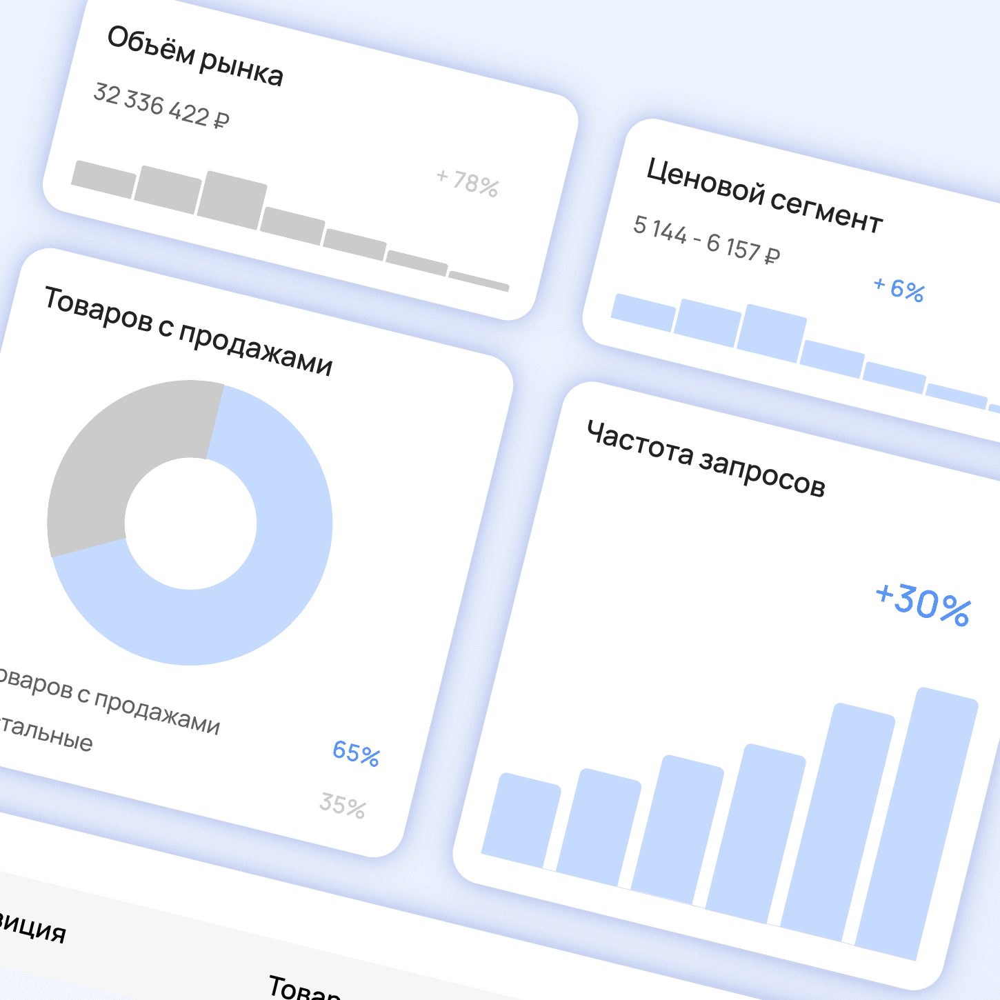 Анализируем продажи по отзывам и динамике цен, изучаем топовые запросы конкурентов, проверяем SEO и качество карточек (УТП, фото, отзывы).